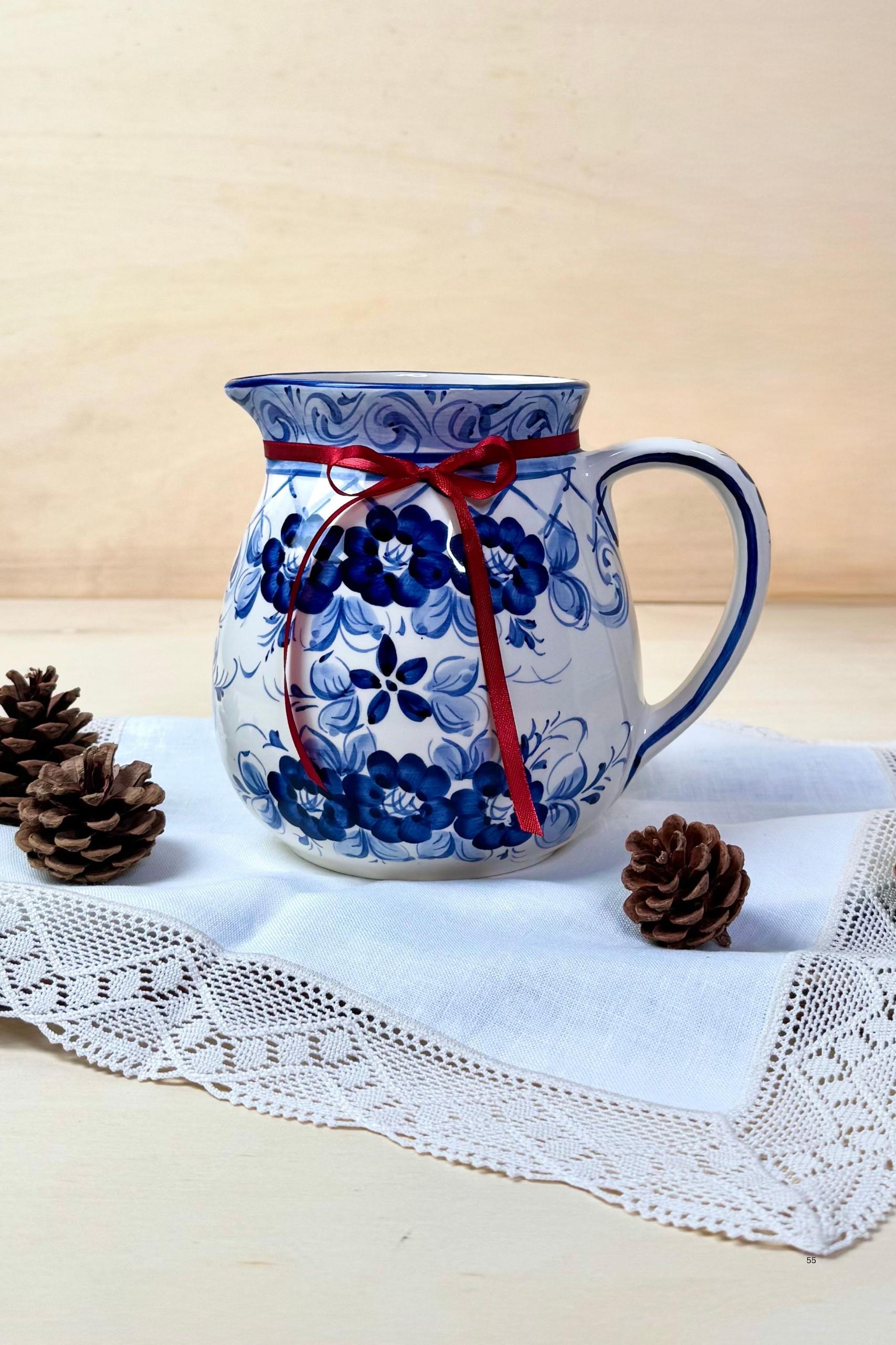 Hand-painted blue floral pattern ceramic jug 1.6L.