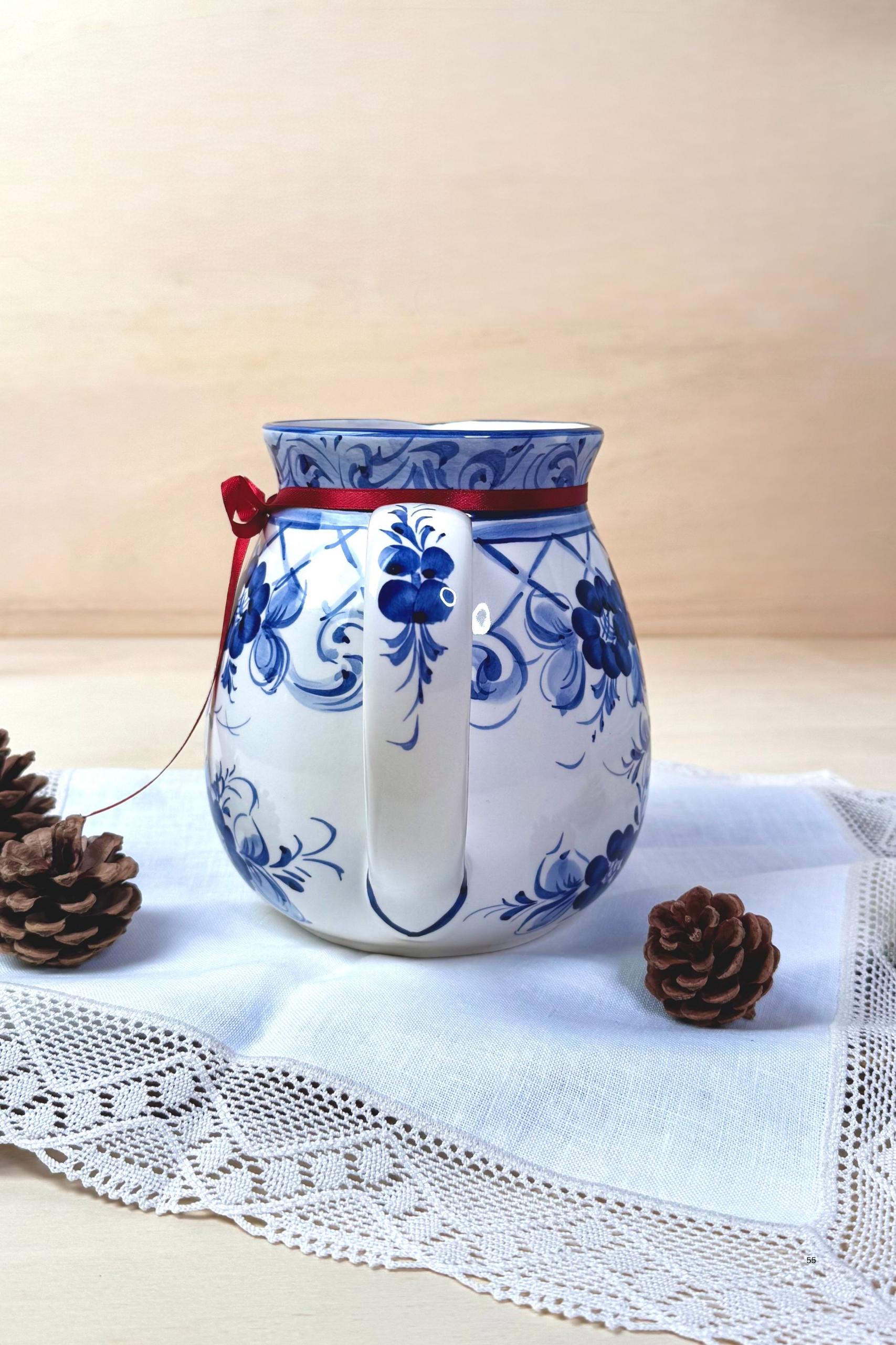 Bring a Portuguese touch to your home with our hand-painted ceramic jug. It features a traditional Portuguese blue floral pattern against a soft off-white background. This versatile piece serves beautifully as a water pitcher, flower vase, or decorative accent in any room. Available in one size only.