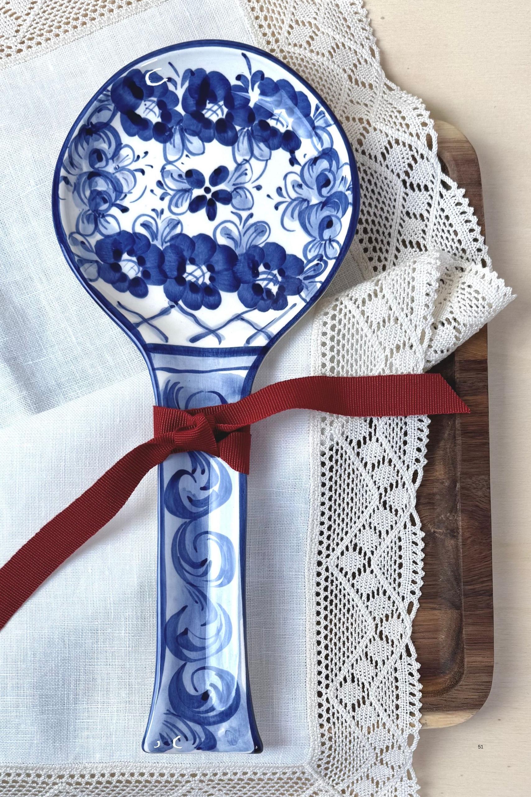 Hand-painted blue floral pattern spoon rest 29 cm.