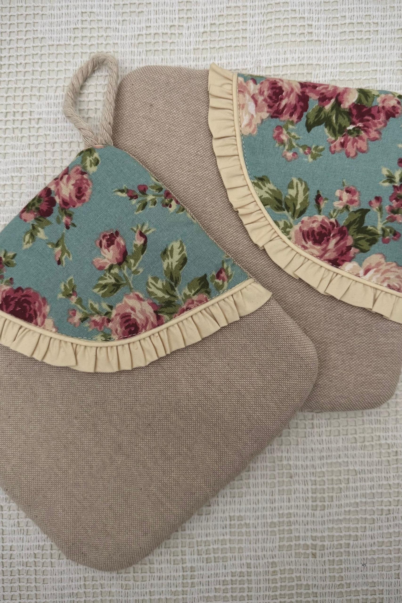 Bring vintage charm to your kitchen this holiday season! Soft beige with delicate pink and blue floral motifs, these mitts are practical, stylish, and perfect as a Christmas gift or festive décor.